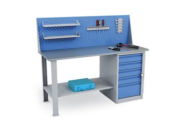 Верстак сборно-разборный ВЛ-3ЦФ-ОПД-Э, модульный. Предназначен для слесарных и сборочных работ. Допустимая нагрузка на столешницу — 200 кг. None