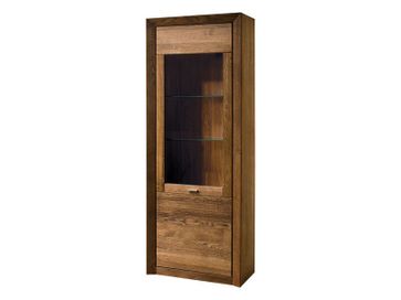 Высокая 1-дверная витрина. Фасад витрины сделан из массива дуба, а корпус покрыт натуральным шпоном. Дерево пропитано маслом - оно защитит вашу мебель от старения; За дверкой 5 полок, 2 из которых стеклянные; Стеклянные полки оборудованы подсветкой - посуда, размещенная на них, будет блестеть; Дверка оборудована системой тихого закрывания - не помешает вам, когда будет закрываться; Дверка открывается справа налево. Необходима предоплата. Возможна рассрочка. Страна производства: Польша Возможен самовывоз. Есть доставка.