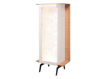 Высокая витрина уникальной формы с металлическими ножками;За остекленной дверцей три стеклянные полки, оборудованные подсветкой;3D дверцы - открываются вместе с углами;Дверца открывается при помощи выемки сбоку, оборудована системой тихого закрывания - не помешает вам когда будет закрываться. Необходима предоплата. Возможна рассрочка. Страна производства: Польша Возможен самовывоз. Есть доставка.