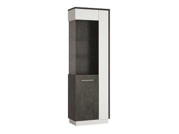 Высокая витрина, за дверками которой 4 полки. Две верхние полки - стеклянные. Две нижние - деревянные; Левая боковая стенка остеклена. Благодаря подсветке, установленной в верхней части витрины, предметы, размещенные на стеклянных полках, будут выглядеть особенно привлекательно. Необходима предоплата. Возможна рассрочка. Страна производства: Польша Возможен самовывоз. Есть доставка.