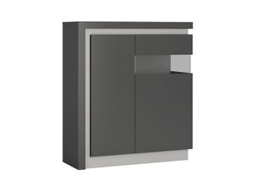 Низкая 2-дверная витрина с остекленным фасадом и боковой стенкой; Подсветкой оборудована как остекленная полка, так и корпус у фасада; Подсветка корпуса имеет сенсорный включатель - вам просто нужно провести рукой рядом с выбранной частью корпуса для того, чтобы включить данную подсветку; За левой и правой дверкой по две полки; Дверки оборудованы системой тихого закрывания. Необходима предоплата. Возможна рассрочка. Страна производства: Польша Возможен самовывоз. Есть доставка.