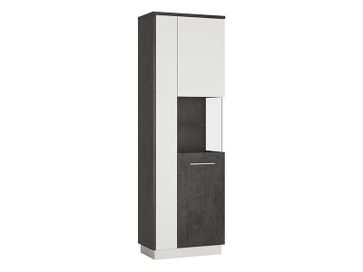 Высокая витрина, за дверками которой 5 полок. Средняя полка - стеклянная. Остальные - деревянные; Правая боковая стенка остеклена. Благодаря подсветке, установленной в верхней части витрины, предметы, размещенные на стеклянных полках, будут выглядеть особенно привлекательно. Необходима предоплата. Возможна рассрочка. Страна производства: Польша Возможен самовывоз. Есть доставка.
