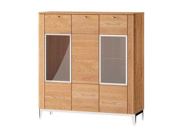 Широкая витрина на металлических хромированных ножках, которую также можно использовать как бар либо буфет; В витрине 3 дверки. Справа и слева дверки остекленные. За каждой из них сверху и снизу деревянные полки, а в центральной части - стеклянные, оборудованные подсветкой; За центральной дверкой три деревянные полки; Дверки оборудованы системой тихого закрывания. Необходима предоплата. Возможна рассрочка. Страна производства: Польша Возможен самовывоз. Есть доставка.
