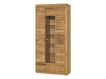 Высокая 2-дверная витрина с декоративной вставкой посреди правой дверцы. Вставка из массива дуба в виде поперечного среза дерева неповторима в каждом элементе коллекции - подчеркивает уникальную природную красоту;За левой дверцей 4 полки. За правой дверцей 6 полок, причем верхняя и нижняя полка деревянная, а остальные, которые находятся за остекленной частью витрины, стеклянные;Остекленные полки оснащены подсветкой теплых тонов - в темное время суток витрина будет выглядеть особенно привлекательно;Дверцы оснащены системой тихого закрывания - они не помешают вам, когда будут закрываться. Необходима предоплата. Возможна рассрочка. Страна производства: Польша Возможен самовывоз. Есть доставка.