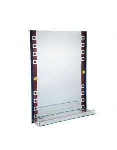 По краям, зеркало декорировано полосами Полка из прозрачного стекла с бортиком. Крепление: шурупы. None