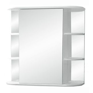 Габариты (ш.в.г.): 65?70.5?17 Зеркало-шкаф Белое Материал корпуса: ДСП Покрытие корпуса: глянцевое / пленка С механизмом доводчика, обеспечивающим плавное закрывание Оснащение зеркала: крепления / полка Гарантия: 3 года Россия