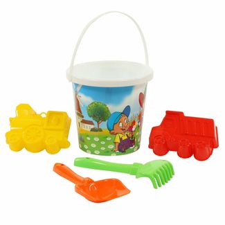 - Набор №119: ведро с наклейкой, лопатка №5, грабельки №5, формочки (самосвал + паровоз) по выгодной цене 182 р. руб.;