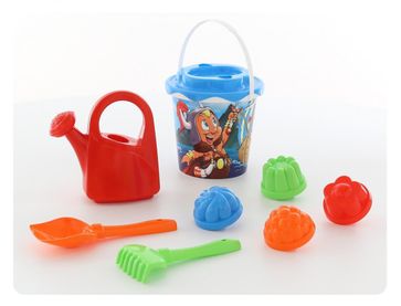 - Набор №133: ведро с наклейкой, ситечко Солнышко, лопатка №5, грабельки №5, 4 формочки, лейка большая по выгодной цене 317 р. руб.;