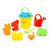 Набор №144: ведро-цветок большое, ситечко-цветок большое, лопатка №5, грабельки №5, формочки (самосвал + паровоз + белочка + пёсик), лейка большая