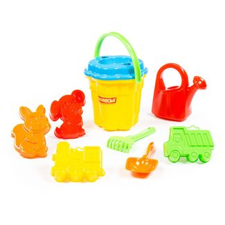 - Набор №144: ведро-цветок большое, ситечко-цветок большое, лопатка №5, грабельки №5, формочки (самосвал + паровоз + белочка + пёсик), лейка большая в каталоге Пляжный отдых в России;