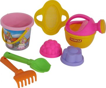 - Набор №180: ведро малое с наклейкой, ситечко-цветок, совок №2, грабельки №2, 2 формочки, лейка малая №4 по выгодной цене 156 р. руб.;