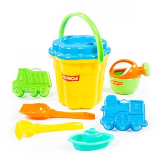 Закажите Набор №202: ведро-цветок большое, ситечко-цветок большое, лопатка №5, грабельки №5, формочки (самосвал + паровоз), кораблик Юнга, лейка малая №4 у компании Detkiok в Россиина портале Alloy: