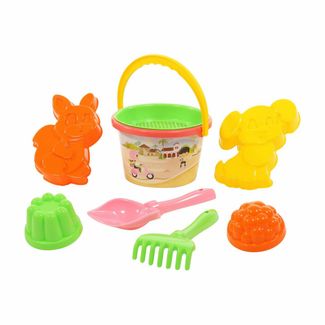 - Набор №213: ведро среднее с наклейкой, ситечко, лопатка №5, грабельки №5, формочки (белочка + пёсик), 2 формочки по выгодной цене 210 р. руб.;