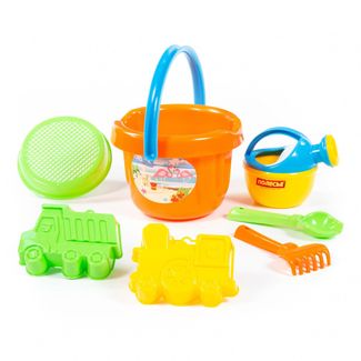 - Набор №230: ведро большое, ситечко, совок №2, грабельки №2, формочки (самосвал + паровоз), лейка малая №4 по выгодной цене 241 р. руб.;