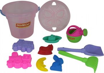 - Набор №247: ведро Макси, сито Бабочка, лопата №6, грабли №6, формочки (самосвал + паровоз + заяц + лошадка + месяц), кораблик Юнга, лейка малая №4 по выгодной цене 415 р. руб.;