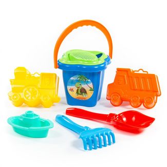 - Набор №249: ведро-цветок среднее, ситечко-цветок, лопатка №5, грабельки №5, формочки (самосвал + паровоз), кораблик Юнга по выгодной цене 155 р. руб.;