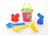 - Набор №250: ведро малое с наклейкой, ситечко-цветок, совок №2, грабельки №2, формочки (заяц + лошадка + месяц) по выгодной цене 113 р. руб.;