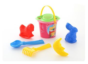 Закажите Набор №250: ведро малое с наклейкой, ситечко-цветок, совок №2, грабельки №2, формочки (заяц + лошадка + месяц) у компании Detkiok в Россиина портале Alloy: