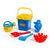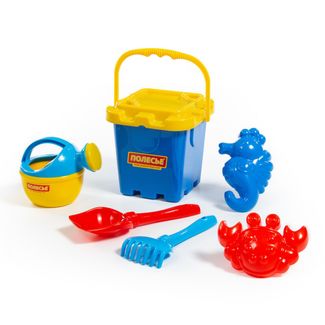 - Набор №253: ведро среднее с наклейкой, ситечко, лопатка №5, грабельки №5, формочки (котёнок + медведь + заяц + месяц) по выгодной цене 214 р. руб.;