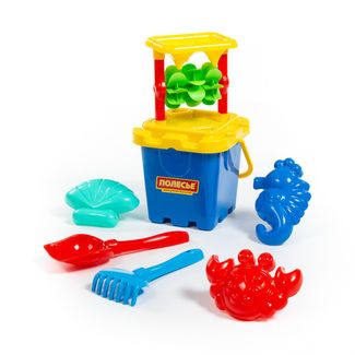 - Набор №283: песочная мельница №2 с основанием ситечко-крепость большое №2, ведро-крепость большое, лопатка №5, грабельки №5, формочки (краб №2 + морской конёк + ракушка №2) по выгодной цене 309 р. руб.;