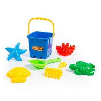 - Набор №290: ведро-крепость большое, совок №8, грабельки №8, формочки (краб №2 + морская звезда №2 + ракушка №2 + черепаха) по выгодной цене 384 р. руб.;