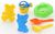 Набор №293: ситечко-цветок большое, лопатка №5, грабельки №5, формочки (котёнок + медведь), лейка малая №4