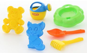 - Набор №293: ситечко-цветок большое, лопатка №5, грабельки №5, формочки (котёнок + медведь), лейка малая №4 по выгодной цене 189 р. руб.;