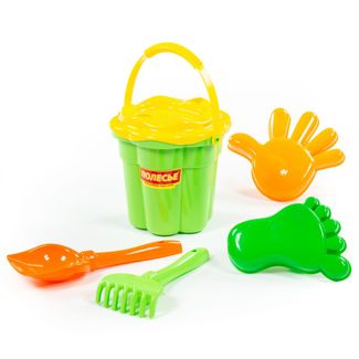 - Набор №308: ведро-цветок среднее №3, ситечко-цветок среднее №3, лопатка №5, грабельки №5, формочки (ладошка + ножка) по выгодной цене 186 р. руб.;