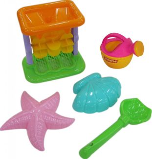- Набор №343: песочная мельница №2 с основанием, совок №2, формочки (морская звезда №2 + ракушка №2), лейка малая №3 по выгодной цене 199 р. руб.;
