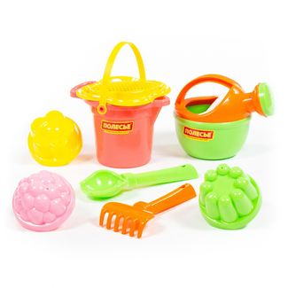 - Набор №345: ведро малое с носиком, ситечко-цветок, совок №2, грабельки №2, 3 формочки, лейка малая №4 по выгодной цене 155 р. руб.;