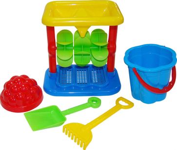 - Набор №347: песочная мельница №2 с основанием, ведро-цветок малое, лопатка малая №3, грабельки малые №3, 1 формочка по выгодной цене 160 р. руб.;
