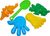 Набор №371: совок №7, формочки (динозавр №1 + динозавр №2 + ладошка + ножка) (в пакете)