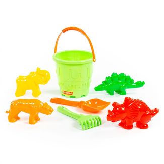 - Набор №527: ведро-замок большое, лопатка №5, грабельки №5, формочки (тигр + мамонт + динозавр №1 + динозавр №2) по выгодной цене 200 р. руб.;