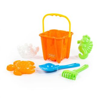 - Набор №550: ведро-замок большое №2, лопатка №5, грабельки №5, формочки (краб №2 + морской конёк + черепаха) по выгодной цене 212 р. руб.;