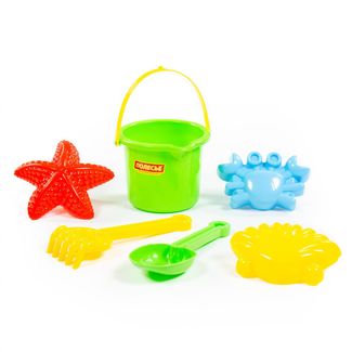 - Набор №579: ведро малое с носиком №2, совок №7, грабельки №7, формочки (краб №1 + морская звезда №1 + ракушка №1) по выгодной цене 146 р. руб.;