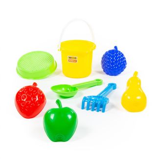 - Набор №581: ведро малое с носиком №2, ситечко, совок №7, грабельки №7, формочки Фрукты 4 шт по выгодной цене 183 р. руб.;
