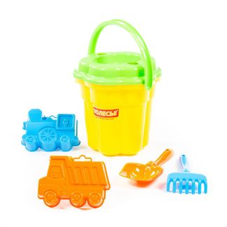 - Набор №76: ведро-цветок большое, ситечко-цветок большое, лопатка №5, грабельки №5, формочки (самосвал + паровоз) по выгодной цене 237 р. руб.;