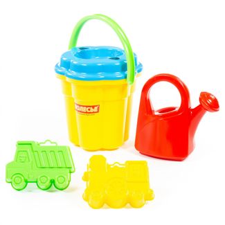 - Набор №77: ведро-цветок большое, ситечко-цветок большое, лейка большая, формочки (самосвал + паровоз) по выгодной цене 308 р. руб.;