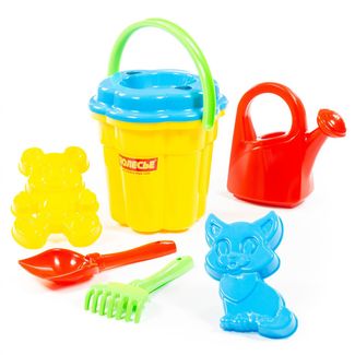 - Набор №97: ведро-цветок большое, ситечко-цветок большое, лопатка №5, грабельки №5, формочки (котёнок + медведь), лейка большая по выгодной цене 350 р. руб.;