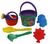 Набор XV: ведро среднее с наклейкой, ситечко, лопатка №5, грабельки №5, 2 формочки большие, лейка малая №4