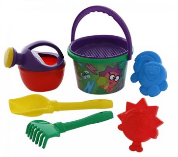 - Набор XV: ведро среднее с наклейкой, ситечко, лопатка №5, грабельки №5, 2 формочки большие, лейка малая №4 по выгодной цене 265 р. руб.;