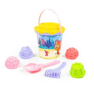 - Песочный набор Три кота №5: Ведро с наклейкой, ситечко Солнышко, лопатка №5, грабельки №5, 4 формочки по выгодной цене 248 р. руб.;