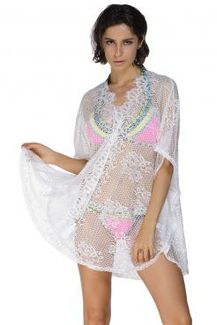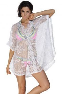 Очаровательное пляжное платье свободного кроя. Модель выполнена из легкой ткани с цветочным узором. Оригинальный вырез и обработка краев изделия. Короткий рукав-клеш. В наличии 1 шт None Есть доставка.