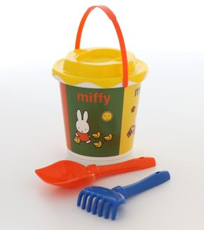 Миффи-2 набор №1: ведро с наклейкой, ситечко Солнышко, лопатка №5, грабельки №5