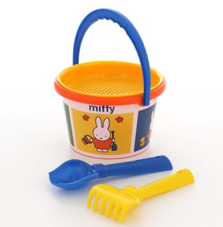 - Миффи-5 набор №1: ведро среднее с наклейкой, ситечко, совок №2, грабельки №2 по выгодной цене 169 р. руб.;