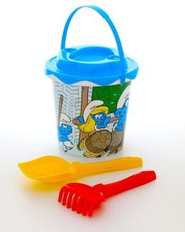 Смурфики: Затерянная деревня-3 набор №1: ведро с наклейкой, ситечко Солнышко, лопатка №5, грабельки №5