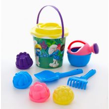 Смурфики: Затерянная деревня-3 набор №3: ведро с наклейкой, ситечко Солнышко, лопатка №5, грабельки №5, лейка малая №4, формочки 4 шт.