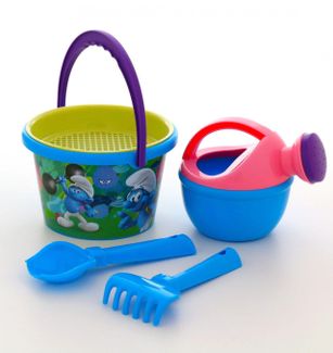Смурфики: Затерянная деревня-4 набор №2: ведро среднее с наклейкой, ситечко, совок №2, грабельки №2, лейка малая №4