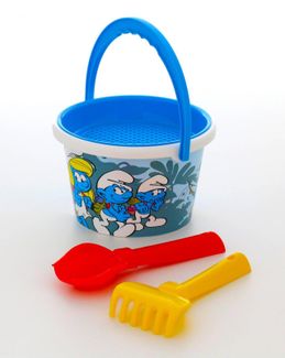 Смурфики: Затерянная деревня-6 набор №1: ведро среднее с наклейкой, ситечко, совок №2, грабельки №2