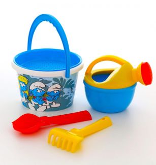 Смурфики: Затерянная деревня-6 набор №2: ведро среднее с наклейкой, ситечко, совок №2, грабельки №2, лейка малая №4